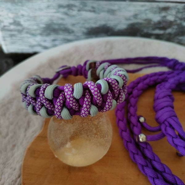 Maak elke wandeling een feestje met deze prachtig handgemaakte snelle uitlater in de trendy kleuren acid paars, zilvergrijs, acid paars diamond! Super geschikt voor puppy's om ze snel aangelijnd te hebben voor het zindelijk maken.
