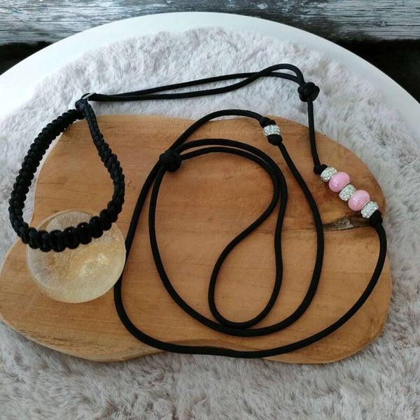 Subtiele details: de showlijn is afgewerkt met vijf acryl kralen: drie versierd met witte fonkelende strass steentjes en twee in een stijlvolle roze kleur. Deze kralen zorgen niet alleen voor een elegante uitstraling, maar geven de lijn ook net genoeg gewicht, zodat deze altijd losjes hangt, precies zoals voorgeschreven tijdens hondenshows. Verder in de lijn zit ook een kraal om de lijn een geheel te maken en een extra luxe en unieke uitstraling te geven.