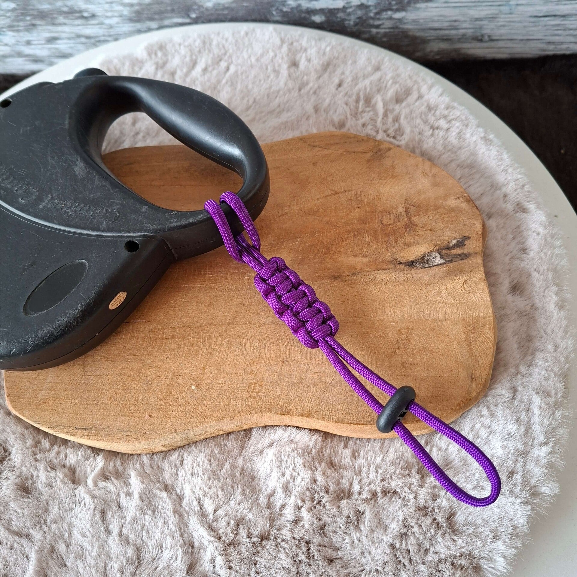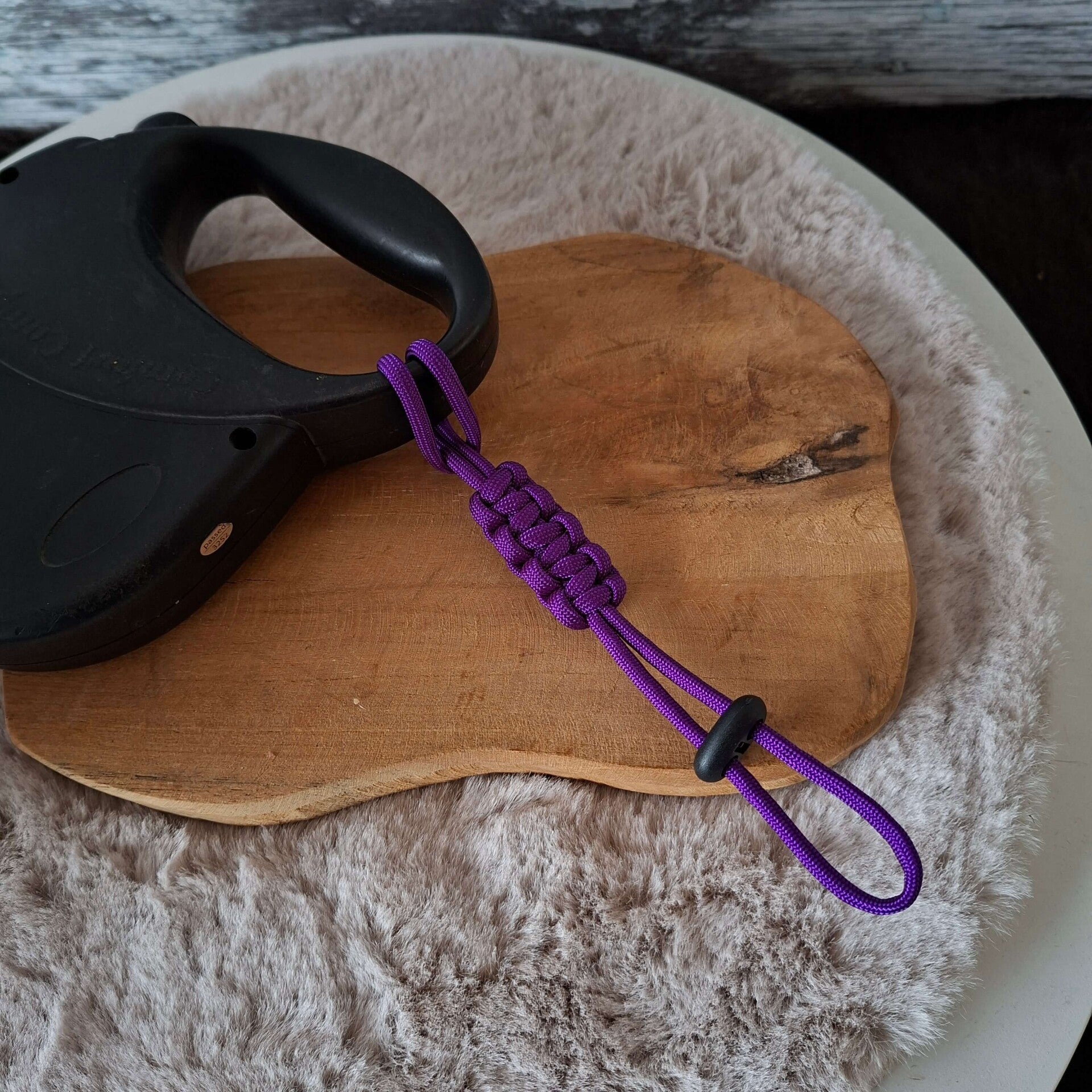 Aan de poopy holder hang je zowel lege als volle zakjes aan. Met de poopy holder vergeet je nooit geen zakjes mee te nemen. Nadat je hond ontlast heeft ruim je het op en hang je het volle zakje in de holder. Dan wandel je met vrije handen verder. Hij is gemaakt van type 3 paracord en heeft een lengte van 23,5cm. De kleuren is acid paars.
